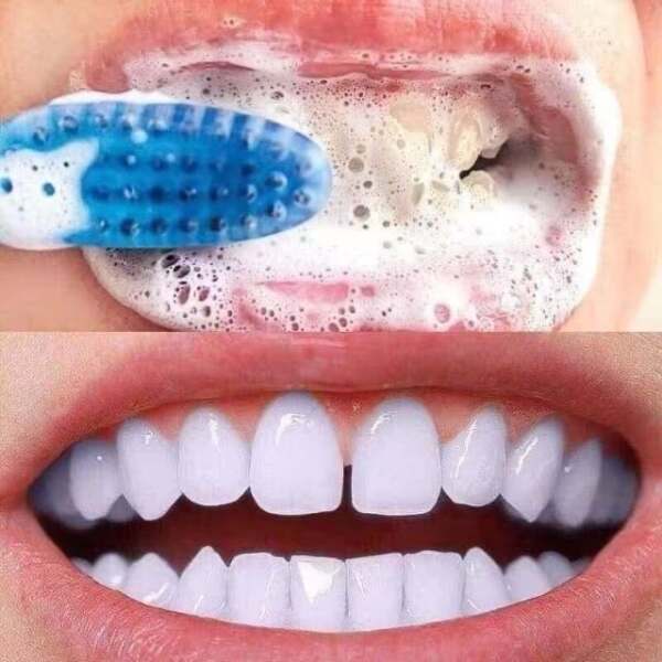 Unlike ordinary whitening toothpaste with harmful abrasives and chemicals, with the chemical reaction of dissolved baking soda