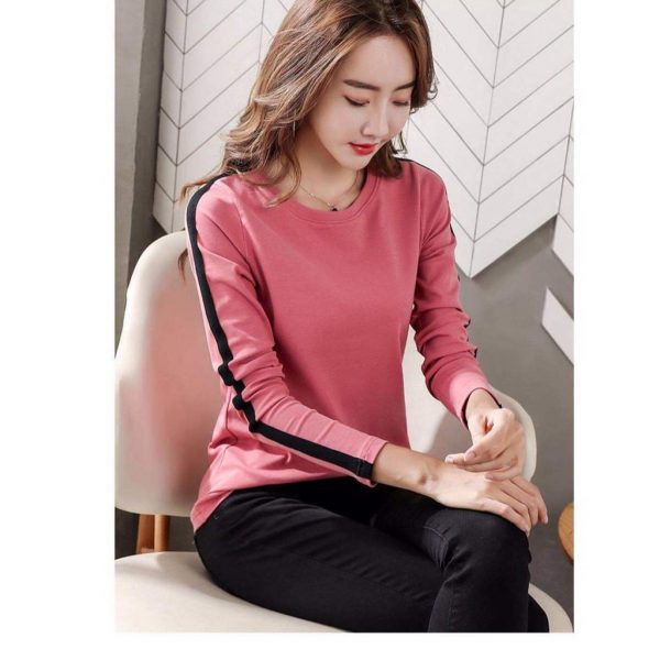 Women Cotton t shirt Solid Color Round Long Sleeve Plus Slim Loose